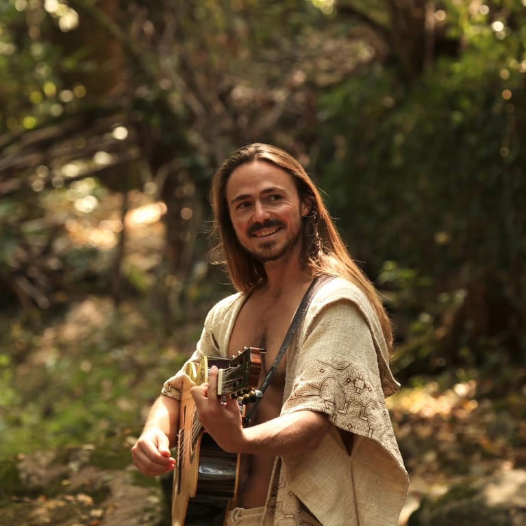 Mon univers musical est riche et varié, nourri par des influences aussi diversifiées que les mantras de l'Inde, les chants médecine d'Amérique latine et des chants du monde entier. À travers chaque chanson, chaque parole, je cherche à éveiller la joie, la paix intérieure et l’harmonie. Mes compositions sont un appel à célébrer l’unité, à se reconnecter à notre essence profonde et à cette grande famille humaine que nous formons ensemble.